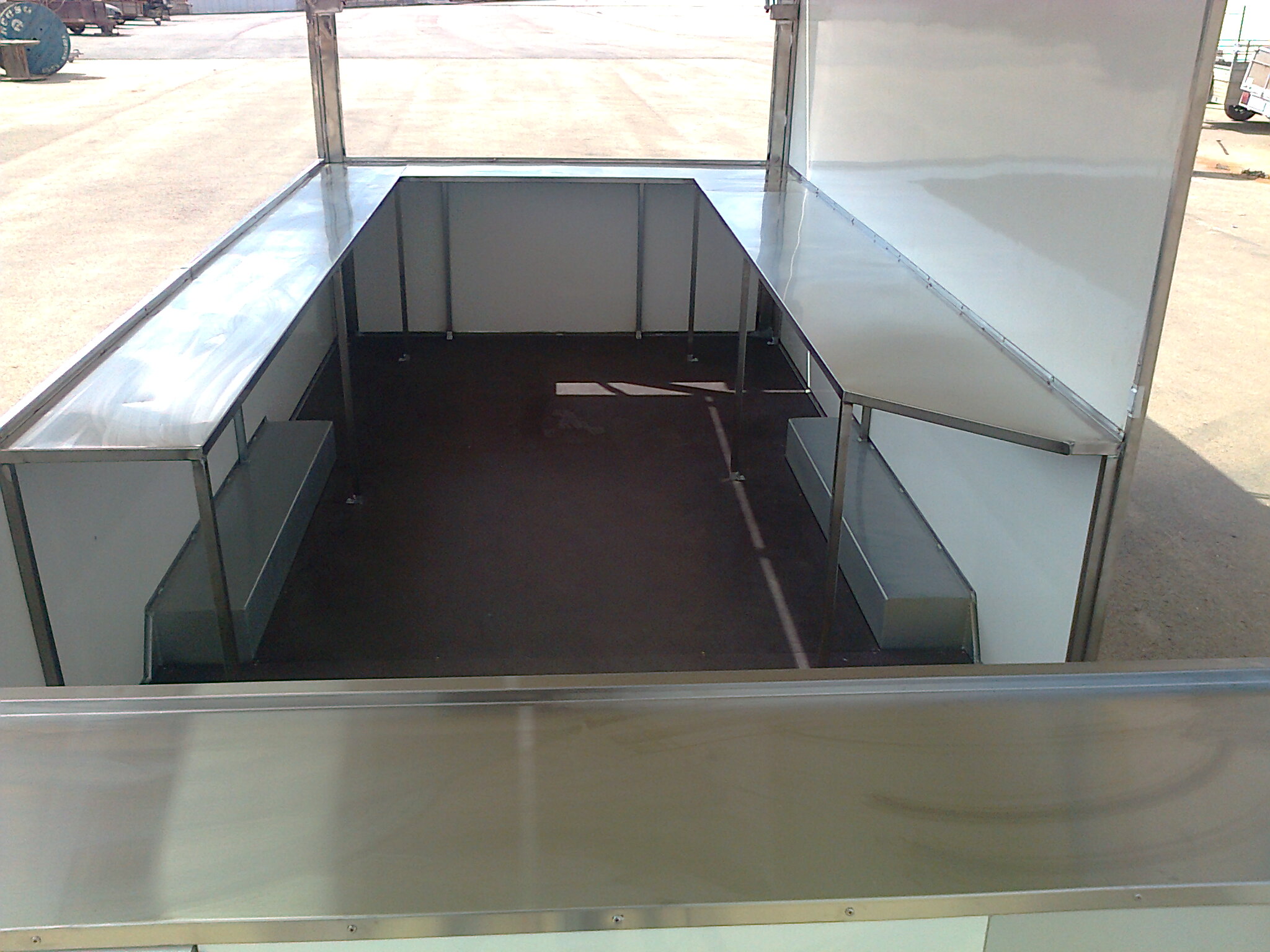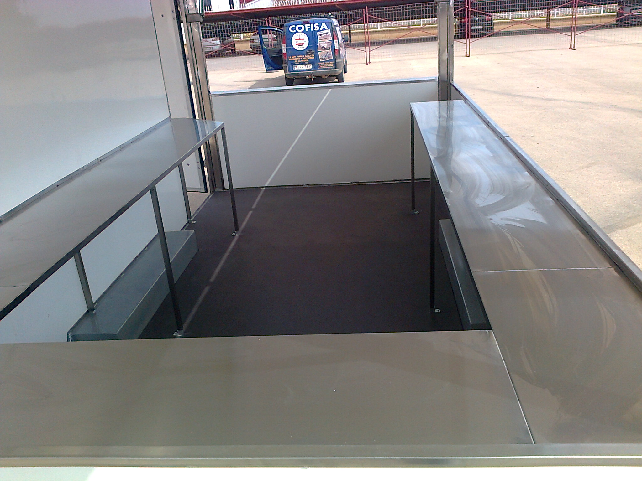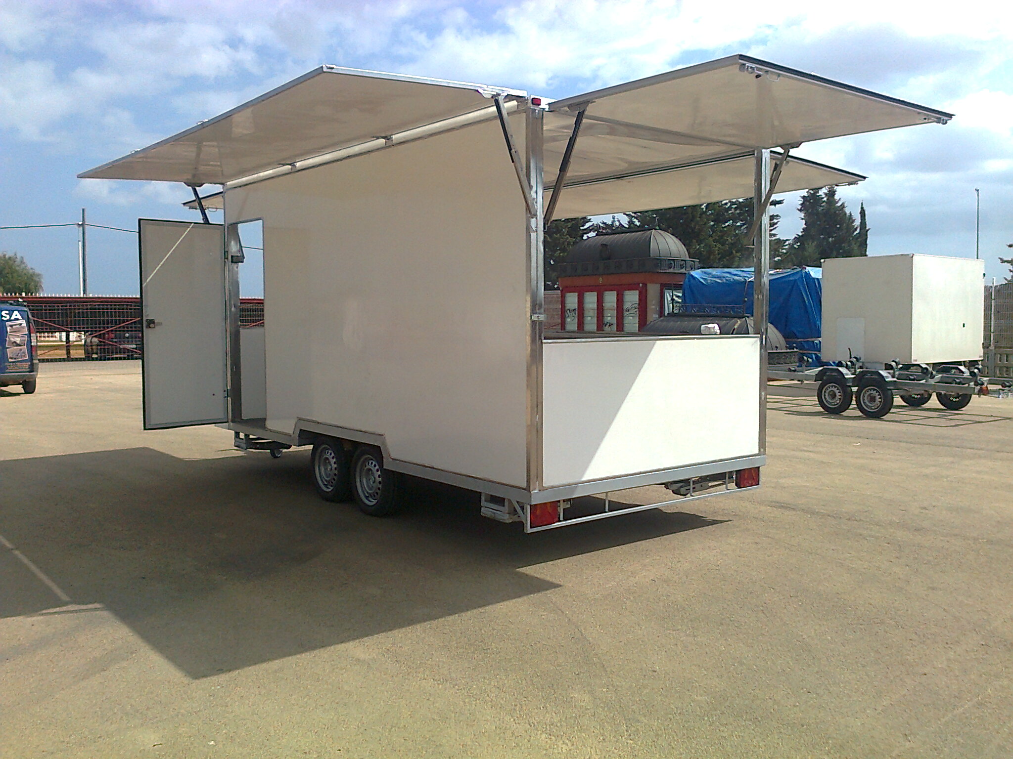 Remolques fabricados según las necesidades del cliente. Fabricado en panel sándwich o poliéster de uno o dos ejes. Incluye pilares y mostradores de acero inoxidable.